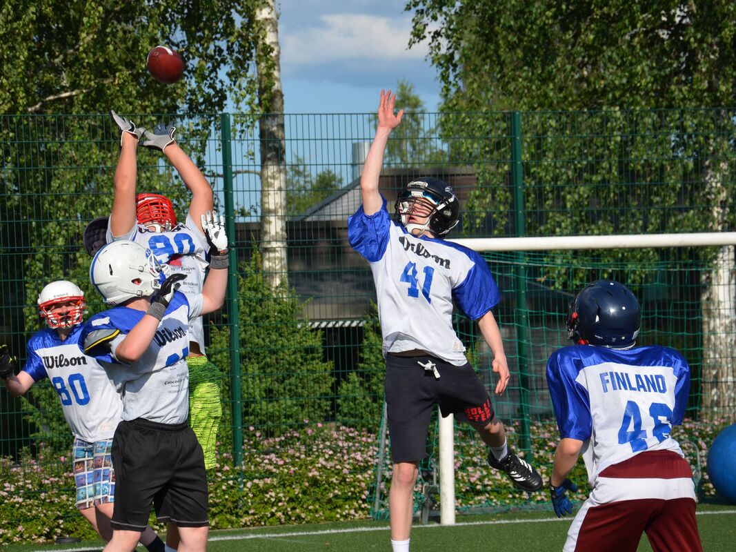 Hauskalle ja tehokkaalle leirille osallistui kahdeksan jenkkifutaria ja viisitoista ringeten harrastajaa. Jenkkifutiksen lajiryhmä harjoitteli niin sateessa kuin auringonpaisteessa 2-3 päivässä. Perinteisten amerikkalaisen jalkapallon treenien lisäksi ohjelmassa oli juoksu- ja painonostoharjoittelu, kehonhallintaa, trampoliinihyppyjä, joogaa, rentoutusharjoituksia, koripalloa, jousiammuntaa sekä kirkkovenesoutua. Ringette-tytöt pääsivät tutustumaan lippupallon saloihin jefuleiriläisten opastuksella. Jenkkifutareiden fotogeneettisimmistä suorituksista jaettiin muistoksi eri leiripäivinä vintage NFL-valokuvia. Leirin pappina toimi Mika Malinen, joka kertoi ryhmän eräästä harjoituksesta, jossa Jeesuksen kärsimyspolku tehtiin kokemuksellisesti kuntopolulla, jossa ringette-mailoista oli tehty risti ja hyttyset ahdistelivat leiriläisiä. Leirille osallistuivat: Aapeli Riuttala, Nokia Ghosthunters Kristian Lappalainen, Sipoo Bulldogs Turkka Västrik, Helsinki Roosters Oliver Jyväsjärvi, Helsinki Roosters Arttu Ketonen, Espoo Wolverines Santeri Valpas, Helsinki 69ers Onni Tavasti, Tampere Saints Isonen; Jerry Halme, Sipoo Bulldogs Leirivalmentajat: Joni Niskanen ja Heikki Halttunen Esimerkkejä leiripäivistä: | | Keskiviikko 15.7.2015 | Torstai 16.7.2015 | Perjantai 17.7.2015 | | 7:30-8:00 | Aamiainen | | | | 8:00-8:30 | Aamiainen | Aamiainen | Aamiainen | | 8:30-9:00 | Lähtö | Aamiainen | Aamiainen | | 9:00-9:30 | konfirmaatioharjoitukseen | | Oppitunti | | 9:30-10:00 | Konfirmaatioharjoitus | Oheisharjoitus | Oppitunti | | 10:00-10:30 | Konfirmaatioharjoitus | | Oppitunti | | 10:30-11:00 | Konfirmaatioharjoitus | | Oppitunti | | 11:00-11:30 | Konfirmaatioharjoitus | Lajiharjoitus | Lounas | | 11:30-12:00 | Konfirmaatioharjoitus | | Lounas | | 12:00-12:30 | Lounas | Lounas | | | 12:30-13:00 | Lounas | Lounas | Oheisharjoitus | | 13:00-13:30 | Oppitunti | Oppitunti | | | 13:30-14:00 | Oppitunti | Oppitunti | | | 14:00-14:30 | Oppitunti | Oppitunti | Lajiharjoitus | | 14:30-15:00 | Oppitunti | Oppitunti | | | 15:00-15:30 | Oppitunti | Oppitunti | Oppitunti | | 15:30-16:00 | | Oppitunti | Oppitunti | | 16:00-16:30 | Oheisharjoitus | Oppitunti | Oppitunti | | 16:30-17:00 | | Oppitunti | | | 17:00-17:30 | | Päivällinen | Oheisharjoitus | | 17:30-18:00 | Lajiharjoitus | Päivällinen | | | 18:00-18:30 | | | | | 18:30-19:00 | Päivällinen | Oheisharjoitus | Lajiharjoitus | | 19:00-19:30 | Päivällinen | | | | 19:30-20:00 | Päivällinen | | Oppitunti | | 20:00-20:30 | Uinti | Lajiharjoitus | Oppitunti | | 20:30-21:00 | Uinti | | Oppitunti | | 21:00-21:30 | Sauna ja iltapala | Sauna ja iltapala | Rantasauna ja | | 21:30-22:00 | klo 21-22 | klo 21-22 | grilli-ilta klo 21-22 | | 22:00-22:30 | Iltapala ja Iltahartaus | Iltahartaus | Iltahartaus |