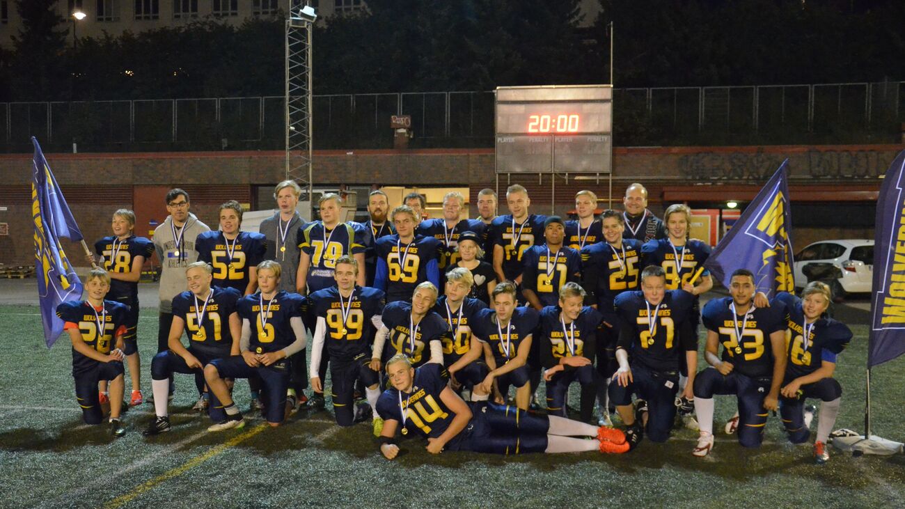 Kauden viimeinen nuorisofinaali Wolverinesin ja 69ersin välillä ratkesi viimeisillä sekunneilla. Pronssia sarjassa vei Kouvola Indians. Tunnelmallinen iltaottelu pelattiin Brahen kentällä Helsingin Kalliossa. Teema ottelussa oli coast to coast, sillä molempien joukkueiden hyökkäykset veivät lähes peräperää hyökkäysvuoronsa maaliin asti. 69ers aloitti maalikimaran, mutta Wolverines vastasi siihen nopeasti tasoittaen 8-8 numeroihin. 69ersin keskushyökkääjä Santeri Valpas oli vahvalla pelipäällä ja hän teki seuraavan maalin. Leevi Vesa potkaisi lisäpisteet ja 69ers johti 8-16. 69ersin monitaituri qb Veikko Holmberg juoksi itse joukkueensa johtoon. Lisäpistepotku epäonnistui. 69ers johtoon 16-22. Tässä vaihessa Wolverines väläytteli heittopeliään. Pelinrakentaja Elmeri Laalo löysi Sampo Tervon vapaana ja tämä otti pallon kiinni maalialueella. Laalon potkun onnistuessa Wolverines siirtyi johtoon ottelussa ensimmäistä kertaa 22-24. Viihdyttävä ottelu ei muodostunut puolustusten juhlaksi. Veikko Holmberg kipaisi bootleg-pelin päätteeksi lähes maaliin. Kentän nopein pelaaja takamies Carl Katigbak sai hänet kuitenkin kiinni viime metreillä. Holmberg painoi pelivälineen maaliin jatkoyrityksillä ja Leevi Vesa potkaisi 69ersit johtoon 24-30. Ja lähes välittömästi Carl Katigbak suoritti ensin pikajuoksun lähelle 69ersin maalia. Katigbak onnistui lähisyöksyllä 26s ennen puoliaikavihellystä viemään joukkueensa jälleen johtoon Potkupelin myötä Wolverines taukojohtoon 32-30. Toisella pelijaksolla Elmeri Laalo palasi peliin mukaan ja heitti Sampo Tervolle onnistuneesti. Jatkotilanteesta Katigbak väänsi itsensä maaliin ja Wolverines lisäsi johtoa Nikolas Hannerin lisäpistepotkulla 40-30. Kiertopeleihin erikoistunut 69ers hyökkääjä Santeri Valpas jäädytti pienellä liikkeellä toss-pelissä Wolverinesin tukimiehet ja pääsi juoksemaan vapaata väylää pitkin maaliin. Potkupeli oli kunnossa ja 69ers kavensi 40-38 tilanteeksi. Tervon veljeksistä keskushyökkääjänä pirteästi pelannut Elias Tervo pamautti seuraavan maalin juoksemalla. Tällä kertaa 69ers onnistui blokkaamaan lisäpistepotkun. Tilanne kutkuttava kolmannen neljänneksen lopussa 46-38. Puolessa välissä viimeistä neljännestä Santeri Valpas juoksi jälleen kerran pitkän siivun maalialueen lähelle. Veikko Holmberg juoksi pallon maaliin ja Brahen kentän runsaspäinen yleisö kohahti tasoituksen 46-46 johdosta. Elmeri Laalon jämäkkä pelinjohtaminen johti seuraavaan maaliin, jossa Wolverines laitahyökkääjä Aleksi Pulkkinen maalasi pitkän heittopelin päätteeksi. Lisäpistepotku onnistui ja Wolverines johtoon 54-46. 69ers pelasi viimeisen puoliminuuttisen vauhdilla ja onnistui kuin onnistuikin Holmbergin maalilla tuomaan vielä kerran joukkueensa 2 pisteen päähän. Ottelu ei päätynyt kuitenkaan hyökkäyskilpailuun, koska tiukassa paikassa tasoittava lisäpistepotku ei onnistunut. Wolverines mestariksi 54-52 hienossa ja jännittävässä finaalissa. Ottelun parhaat: Team MVP rb Santeri Valpas, Helsinki 69ers