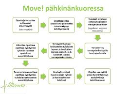 Mikä on Move?!Koska lasten ja nuorten fyysinen aktiivisuus on vähentynyt ja kunto laskenut, ovat myös heidän fyysiset edellytyksensä selviytyä arkipäivän haasteista huonontuneet. Voimmekin ajatella, että monien kouluikäisten fyysinen toimintakyky ei riitä kaikista arjen tilanteista selviämiseen. Valtionhallinnon Move-projektin lähtökohta oli ensin määrittää fyysinen toimintakyky ja ne arkielämän haasteet, joissa oppilaat tarvitsevat fyysistä toimintakykyä. Projektissa on luotu nykyoppilaan tarpeisiin perustuva seurantajärjestelmä, joka tuottaa tietoa oppilaan toimintakyvystä ja kannustaa sen kehittämiseen. Lähtökohtana koululaisen selviytyminen arjen tehtävistäMove-projektin lähtökohtana oli määritellä nykypäivän koululaisten arkielämässään kohtaamat fyysiset haasteet. Nämä fyysisen toimintakyvyn osa-alueet pitävät sisällään lapsilta arkipäivisin edellytetyt fyysiset tehtävät. Kouluikäisen arkipäivän fyysisiksi tehtäviksi määriteltiin: