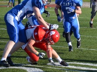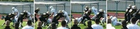 - iske blokkaajaa kypärään ja hartiasuojien yläosaan käsillä ja paina hänet maahan, ennenkuin hän ehtii syöksyä jalkoihisi