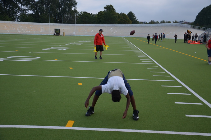 2. Jokaisella suorittajalla on pari. Toinen urheilija suorittaa kisaa ja toinen merkitsee (kypärällä/kartiolla) kohdan, johon pallo tipahtaa.