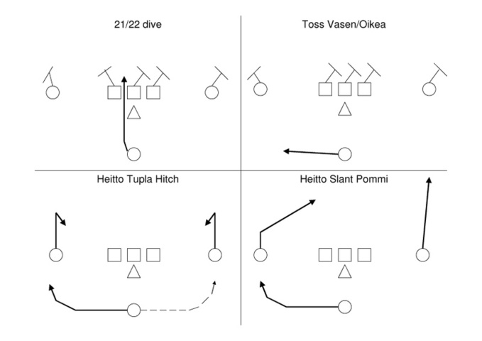 U11 nuorten yhdistelmä joukkueet pelaavat yhteisellä pelikirjalla, josta kentällä oleva valmentaja valitsee käytettävät pelit. Valmiilla pelikirjalla halutaan nopeuttaa pelien toteuttamista, kun pelipaikat on jaettu.