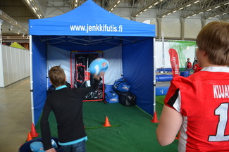 - lajikokeilua eri aktiviteeteilla heittoseinä, juoksutunneli ja taklausdonitsit